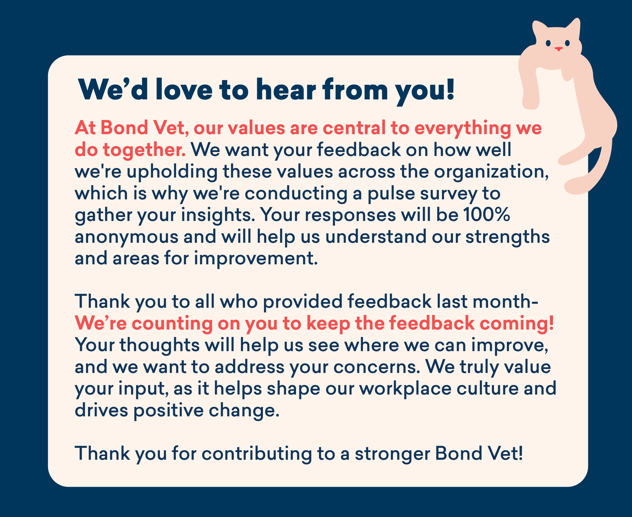 At Bond Vet, designed internal surveys, newsletters, and strategic updates that strengthened organizational culture and cross-team alignment.